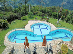 Espectacular casa de dos niveles, con piscina, gimnasio, 5 habitaciones, 6 baños, balcones, salón con chimenea, cocina, ropas y garaje.